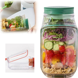 Venta al por mayor de cápsulas de ensalada, capas verticales, cápsulas de ensalada, botellas de plástico construidas, contenedor de mantenimiento fresco, tapa que se puede abrir, tarro de almacenamiento de alimentos
